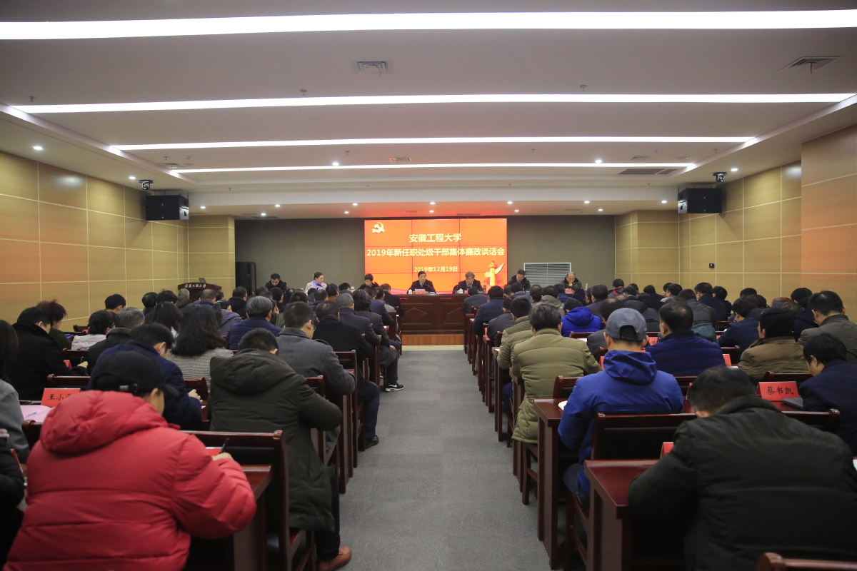 12月19日下午,学校在图书综合楼202会议室召开新任职处级干部集体廉政谈话会,校党政领导班子成员出席会议。全体处级干部参加会议。会议由校党委副书记苏国红主持。