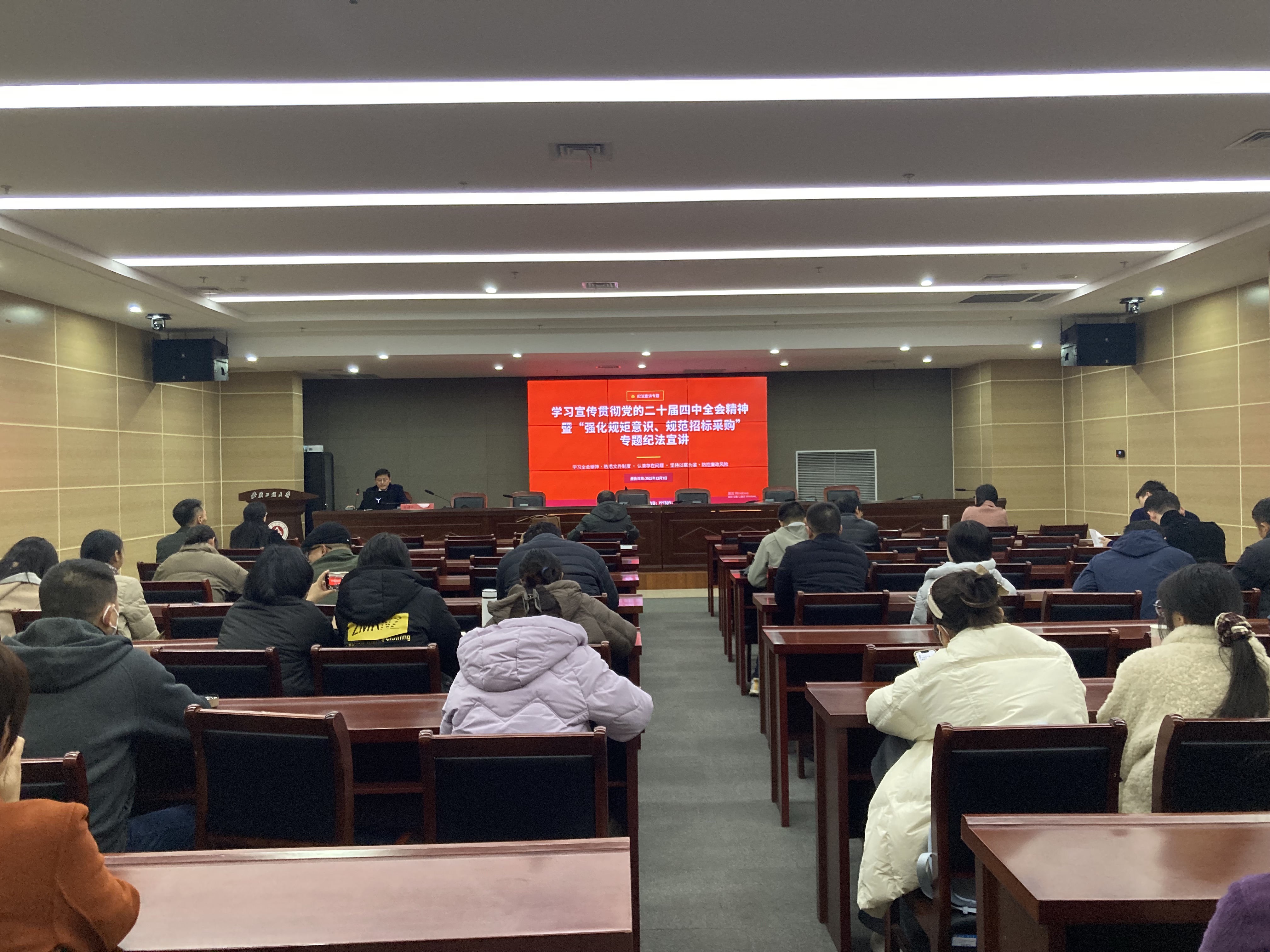 为深入学习宣传贯彻党的二十届四中全会精神,扎实推进全面从严治党,筑牢招标采购领域廉洁防线,强化全院教职工规矩意识。12月3日,财务处副处长刘武赴马克思主义学院开展“学习贯彻党的二十届四中全会精神暨‘强化规矩意识、规范招标采购’”专题纪法宣讲,学院全体教职工参加。