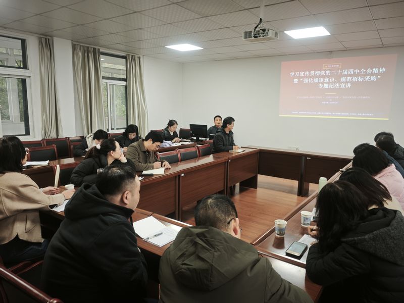为深入学习贯彻党的二十届四中全会精神,进一步加强和规范招标采购管理,持续筑牢后勤招标采购工作的规矩防线,12月11日,财务处副处长管锦岭赴后勤党总支作学习贯彻党的二十届四中全会精神暨“强化规矩意识 规范招标采购”专题纪法宣讲,后勤党总支全体教职工参加会议。会议由后勤党总支书记、后勤保障处处长李敬华主持。