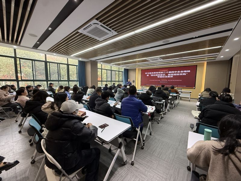 为深入学习贯彻党的二十届四中全会精神,强化规范招标采购管理学习,夯实学院招标采购工作红线。12月17日,财务处处长方永胜赴外国语学院作学习贯彻党的二十届四中全会精神暨 “强化规矩意识 规范招标采购”专题纪法宣讲,全体教职工参加会议,会议由外国语学院党委书记,董金权主持。