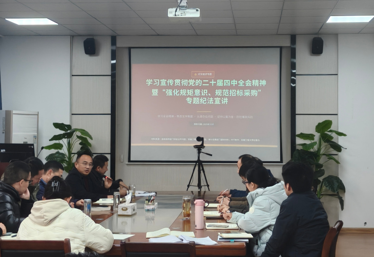 随后,校纪委副书记、纪委办公室主任郭广春为全院教职工做学习宣传贯彻党的二十届四中全会精神暨“强化规矩意识、规范招标采购”专题纪法宣讲。
